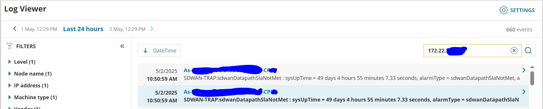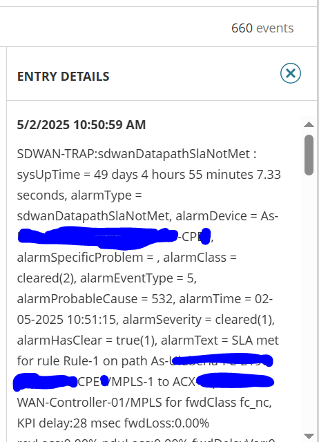 Please see the attached snapshot for your reference. The team has configured these traps in the devices to monitor SLA breaches.