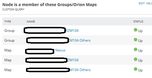 SELECT CASE WHEN m.Container.Owner = 'Core' THEN 'Group' WHEN m.Container.Owner = 'Maps' THEN 'Map' ELSE 'Other' END AS [Type], CASE WHEN m.Container.Owner = 'Core' THEN m.Container.Name WHEN m.Container.Owner = 'Maps' THEN p.DisplayName ELSE 'Other' END AS [Name], m.Container.DetailsURL AS [_linkfor_Name], s.StatusName AS [Status], '/Orion/images/StatusIcons/Small-' + s.StatusName + '.gif' AS [_iconfor_Status]FROM Orion.ContainerMembers mJOIN Orion.StatusInfo s ON m.Container.Status = s.StatusIDLEFT JOIN Orion.Maps.Projects p ON m.Container.Name = p.ProjectIDWHERE m.MemberEntityType = 'Orion.Nodes' AND m.MemberPrimaryID = ${NodeID}