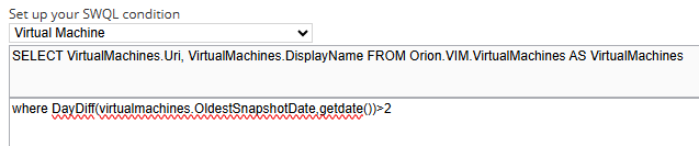 In SWQL Studio I can get the query to pull in the tags ok but in the alert page I have an issue as the select statement can't be changed when I click on Virtual Machine for Set up your SWQL condition.