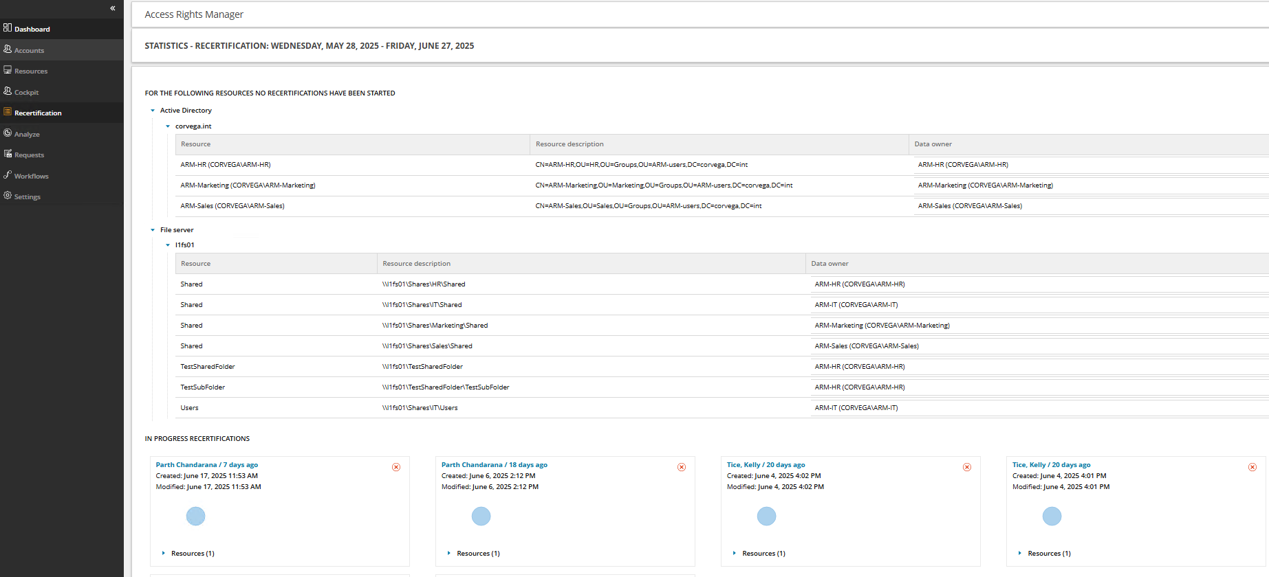 For audit purposes we need to display the results of last years AD and file system recertification in the ARM UI. In the past we have been pulling this information with a customized SQL script and placing it into a report. We need to display it in the UI. Where is this information?