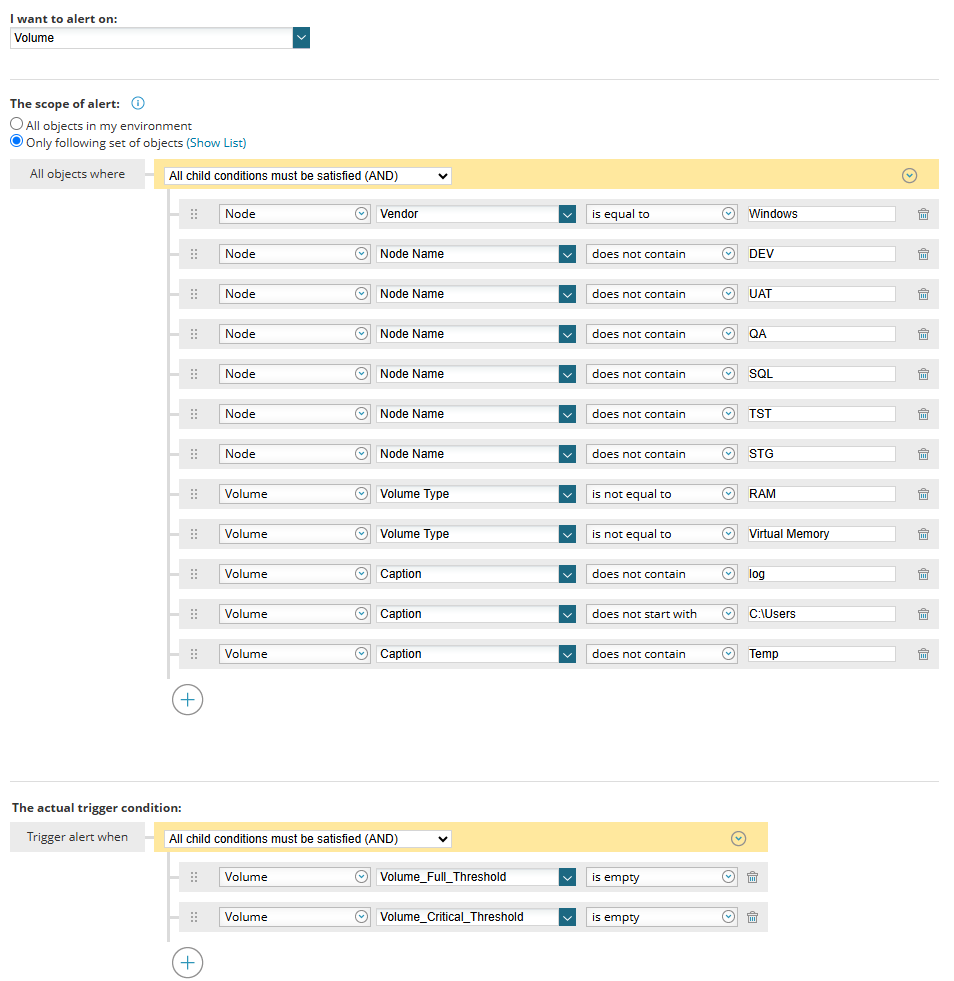 My brain is having issues trying to figure out how to scope the volume alert to only production volumes. I can go through and create the trigger condition and I will get the SWQL and open it in SWQL studio and it will report the Volume and give me the URI for the node but not the node name. I am trying to see if the scope of the alert is correct or not. If anyone has any suggestions or if I am going about this completely wrong let me know.