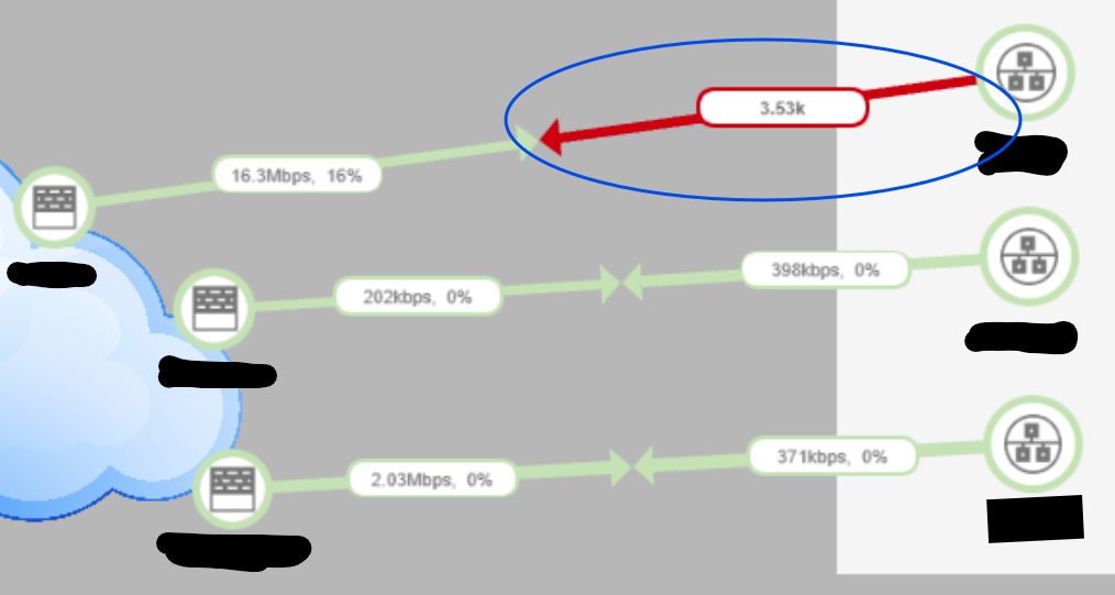 I have connections between devices on the map, which typically show utilization in Mbps or Kbps, but occasionally the utilization will change to be like the circled link below.