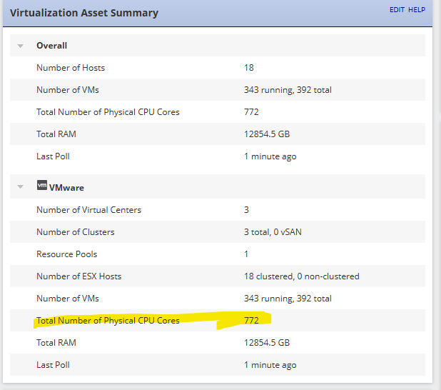 How to pull or get the list of cpu cores for a device or group of devices in SolarWinds by any means. Thanks