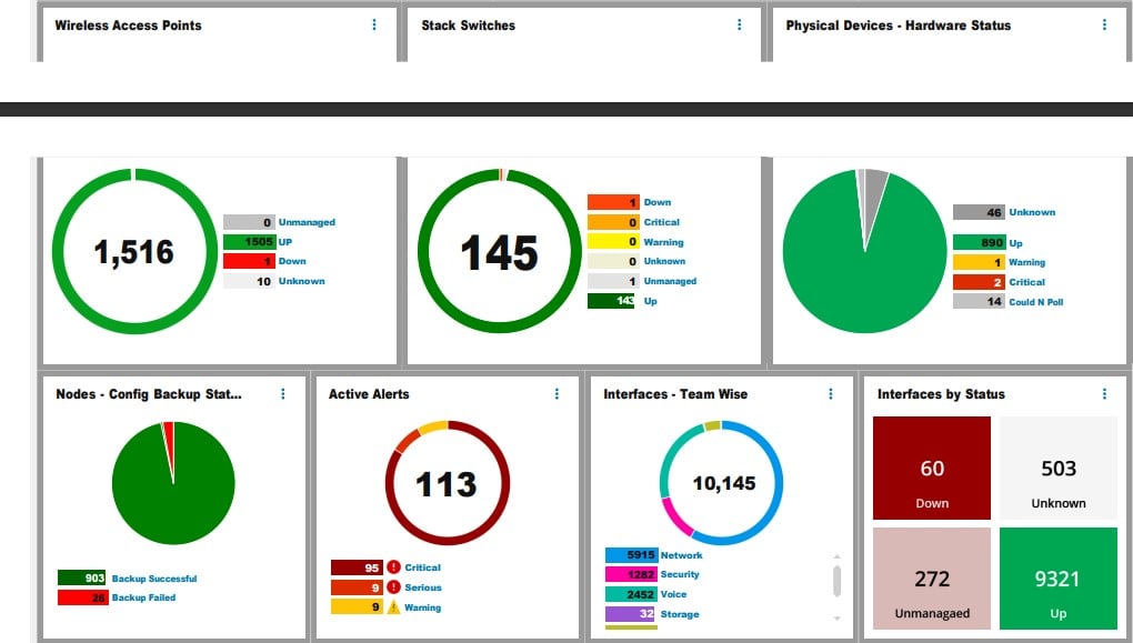 Real-Time Visibility: Live stats on availability, config backup status, polling methods, and interface utilization.
