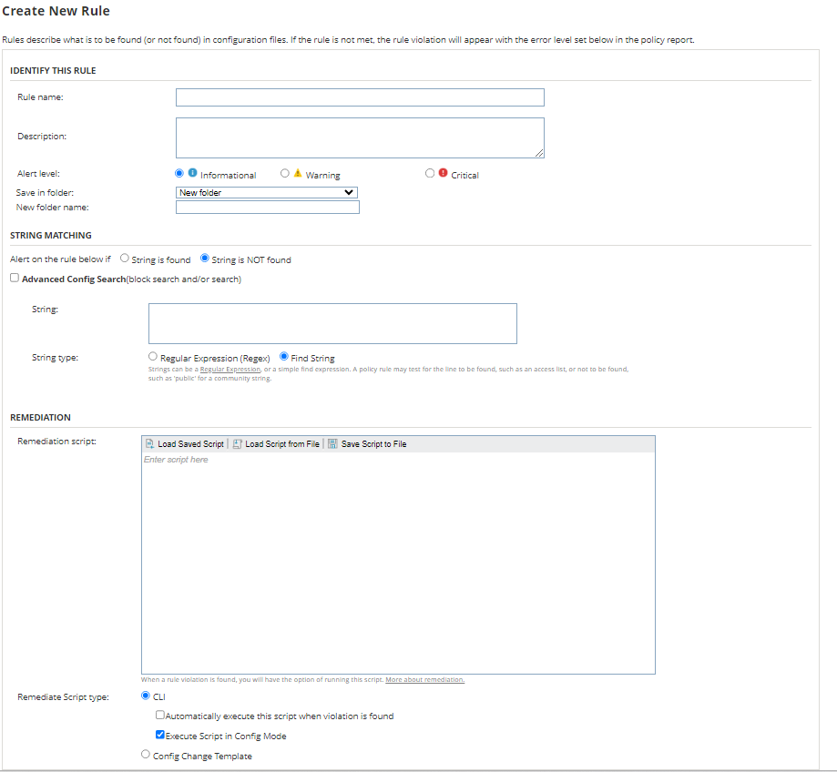 I was thinking of using an NCM compliance report rule which finds the keyword along with an embedded remediation script that would shutdown the interface if the Rule fails. But, how would I define the remediation script to select the appropriate interface. Something similar could be done with an alert that triggers off the interface alias, then executes an NCM action to run the same script.