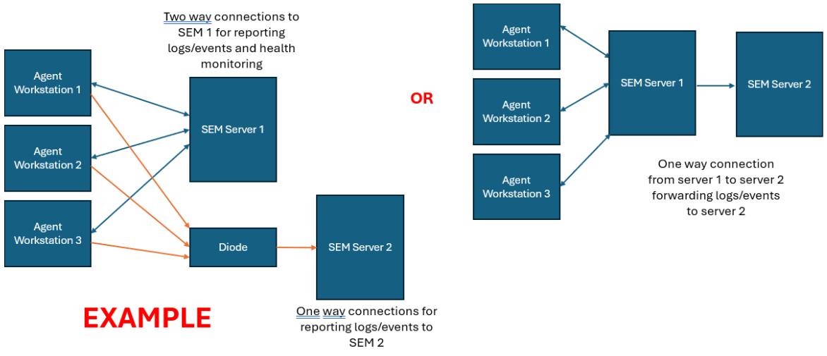 I am trying to find out if SEM servers can have multiple SEM serveres that share data. Basically we would like to have SEM servers on several different domains that can be viewed at that level and also have the SEM data forwarded to a master SEM server where it can be viewed there.