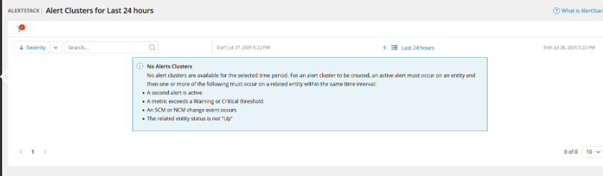 I'm having AlertStack enabled recently. Is this a normal behavior that no Alerts showing? Should I wait some time before the alerts cluster can be seen? Thanks.