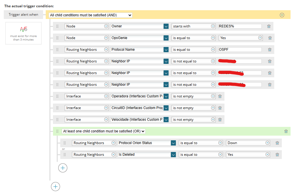 Trying to solve this I added the custom properties on the alert to mitigate this unwanted alerts to trigger but the NPM is not respecting the the trigger condition and continues to open alerts to OSPF that doesn't have the interface custom properties configured.