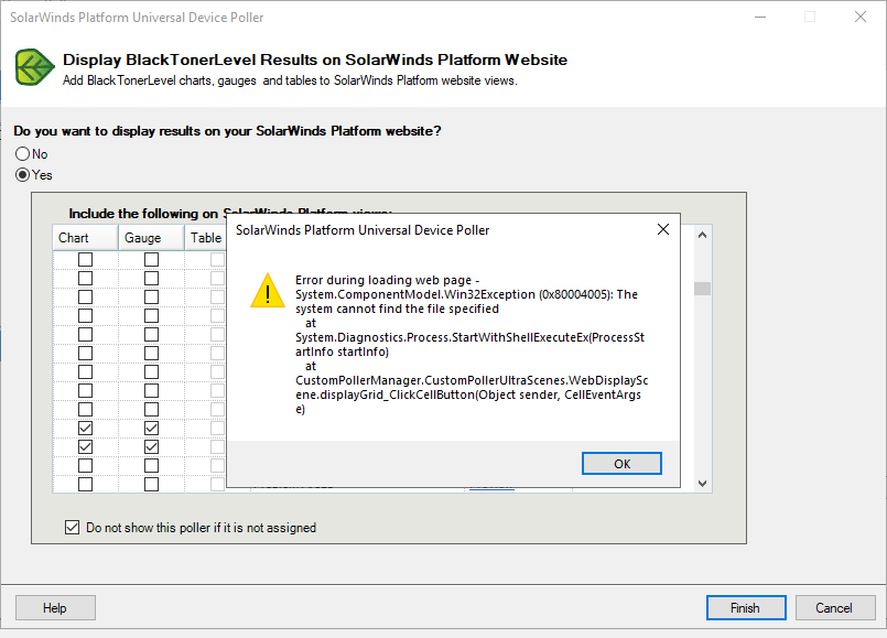 I am trying to monitor toner levels on HP printers. I have added the printers to SAM and I downloaded the universal device poller for HP ink status from Thwack. Thank you to whoever posted that. Now I am trying to integrate the info from the universal poller into SAM so I can view levels and set up alerts and reports. I have assigned the poller to the printers in SAM, but I don't see the toner level data anywhere in SAM. I do see accurate data in the Universal Device Poller app on the server. Any thoughts?