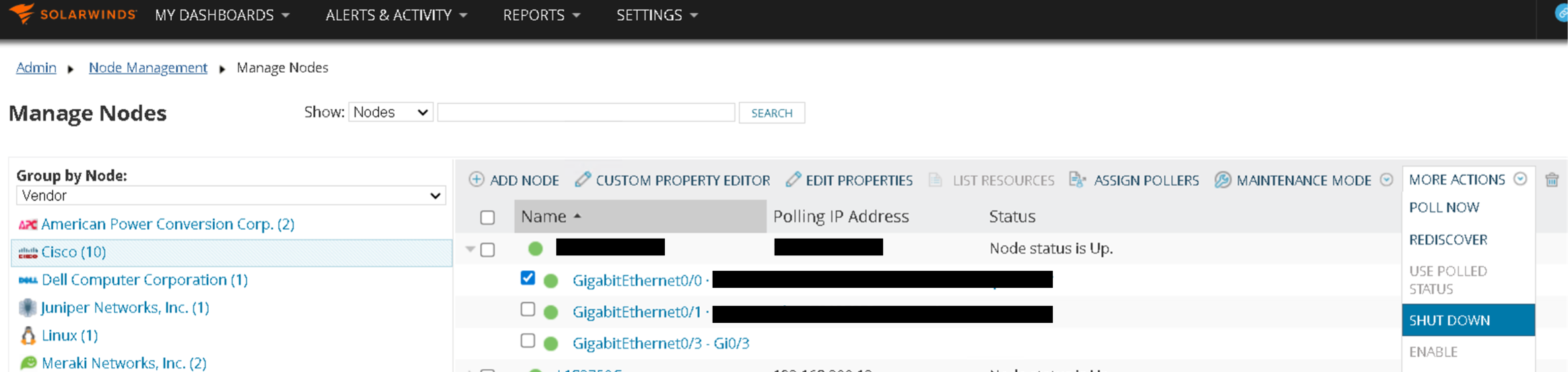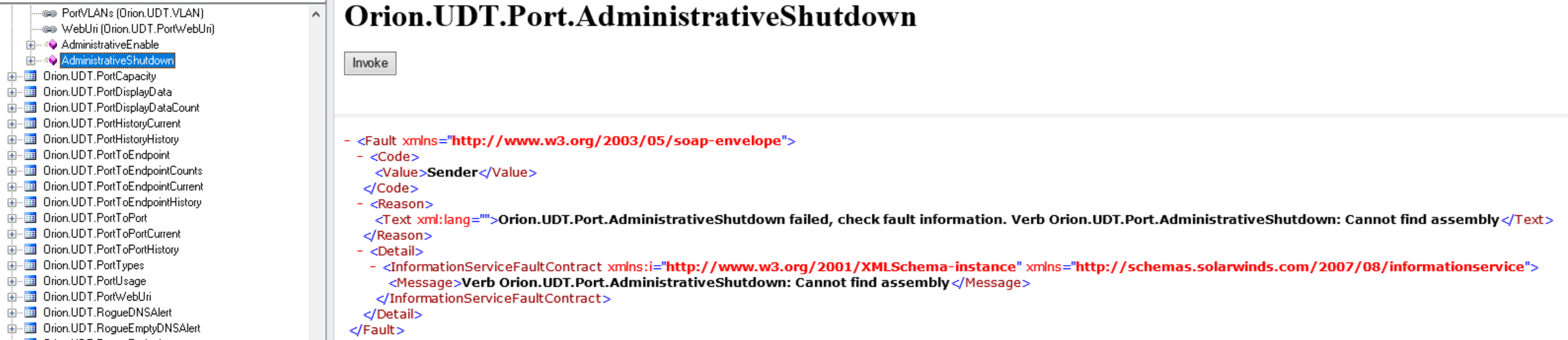 When i use the invoke from the Orion.UDT.Port.AdministrativeShutdown, I get an error.