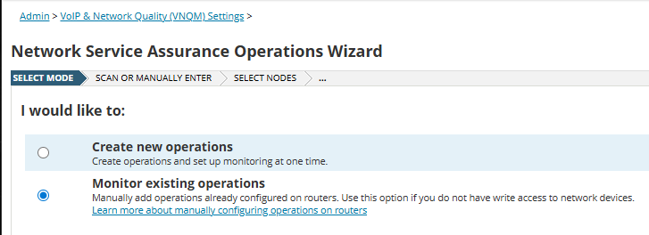 I am trying to integrate pre-existing Cisco IP SLA operations into SolarWinds VNQM. I don't currently have SNMPv3 write privileges on the devices. I see that VNQM typically writes operations when creating them, but I'd like to know: