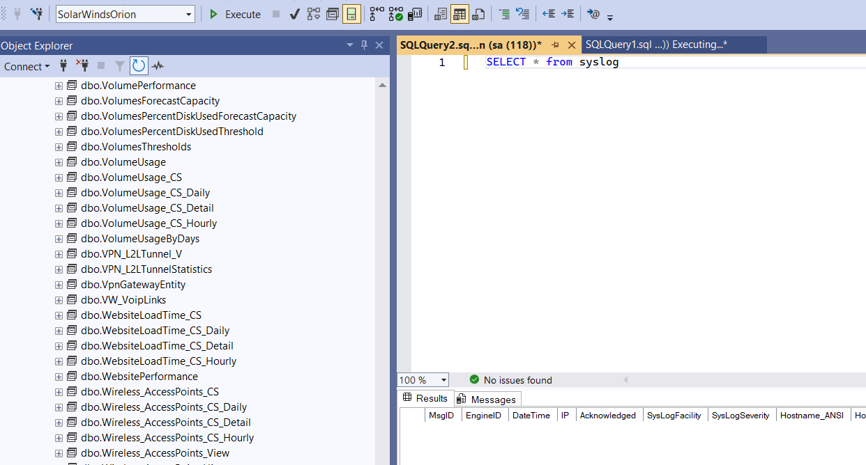 I want to make custom report for orion syslog, but when i query to the syslog table then the table is empty.