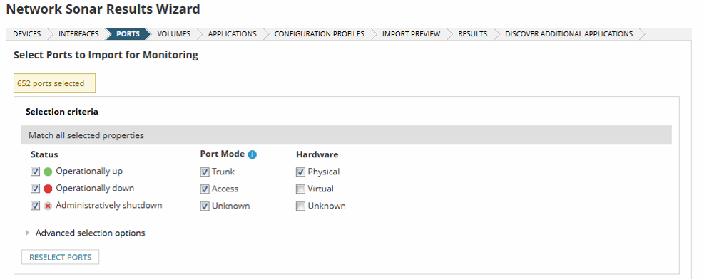 Note: The goal I want to achieve is similar to the selection criteria at Ports tab at Solarwinds GUI.