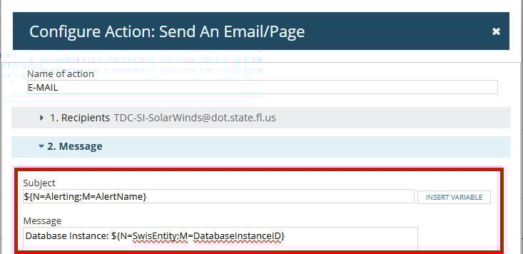 I am working on an alert in NPM which will trigger from DPA. I can query DPA for the specific instance ID, however the database instance name does not show up. I have attached a screenshot. Is there a way, I can pull the database instance name when the alert is triggered? I don't get an option to add the Database Name.