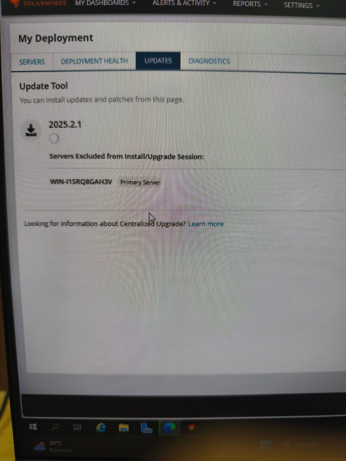 My plan is take snapshot on Solarwinds Server and SQL Server before upgrading. I choose to do upgrade through All Setting > My Deployment > Updates. Is it ok if directly upgrade through solarwinds web console? or should i add some activity besides snapshot both server. Your advice is very important for me.