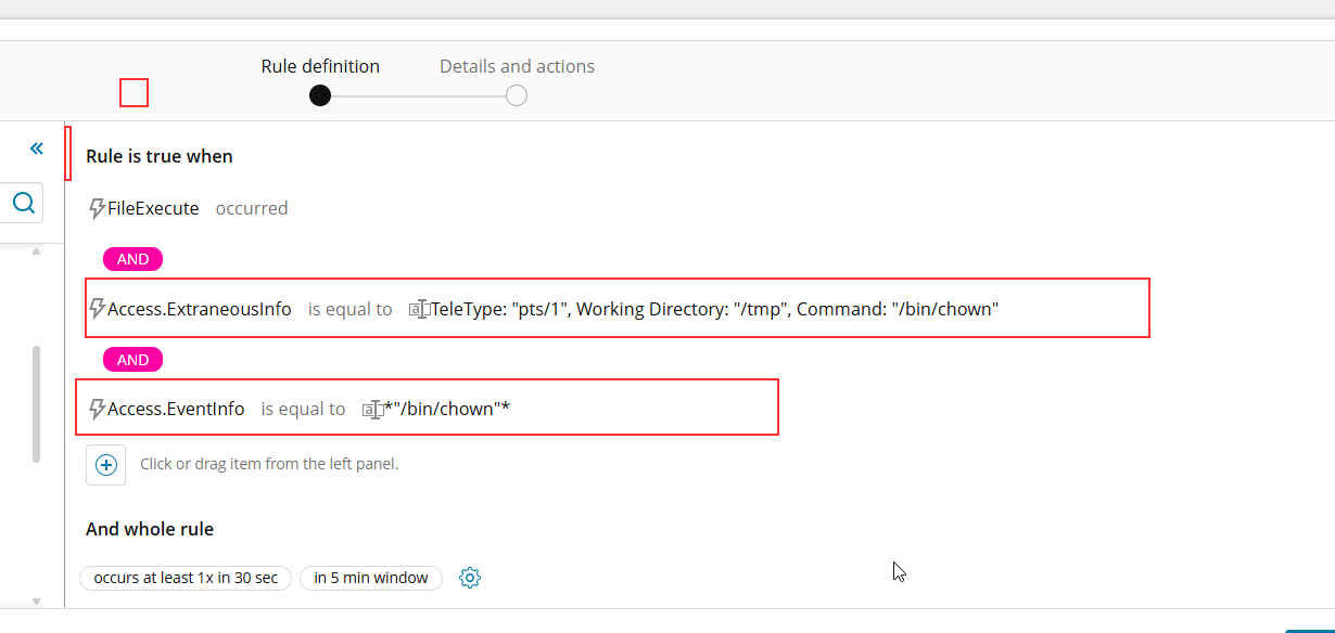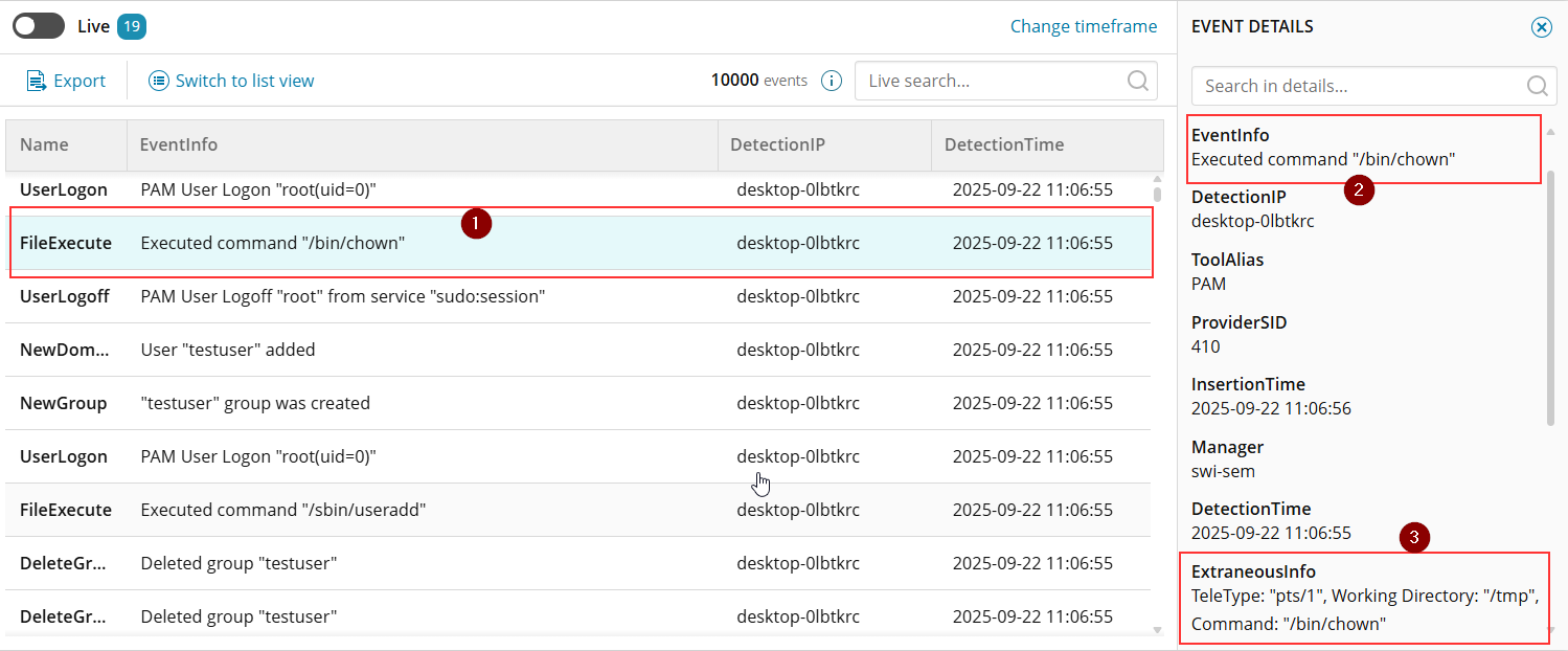 and/or ExtraInfo = TeleType: "pts/1", Working Directory: "/tmp", Command: "/bin/chown"