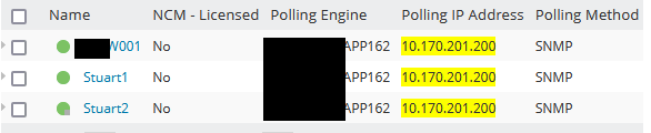 The simple answer is, I don't. What I do want to do is have the same IP multiple times but as an SNMP monitored node. However, for that to happen you need something unique about each instance you add. In my case, we were trying to add Checkpoint virtual FWs which for reasons only the client cares about, they won't let us add the individual management IPs and our creative answer was to add the physical host IP but change the SNMPv3 context to that of the virtual ID on the Checkpoint. The aptly named VSID. Now we have all of the virtual FWs added, added local resources using one IP on one polling engine and the only difference is the VSID number. Screenshots below for proof: