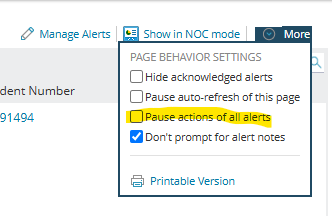 How to Toggle It:1. Go to Alerts & Activity → Alerts (or wherever you see Active Alerts).2. Click More → Page Behavior Settings (as shown in your image).3. Check or uncheck “Pause actions of all alerts.”-> Checked → Pauses all alert actions on that page view.-> Unchecked → Resumes normal behavior.