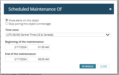 SolarWinds does not support multiple maintenance window