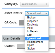 Dropdown for Workstation Asset Status has the following options to select: