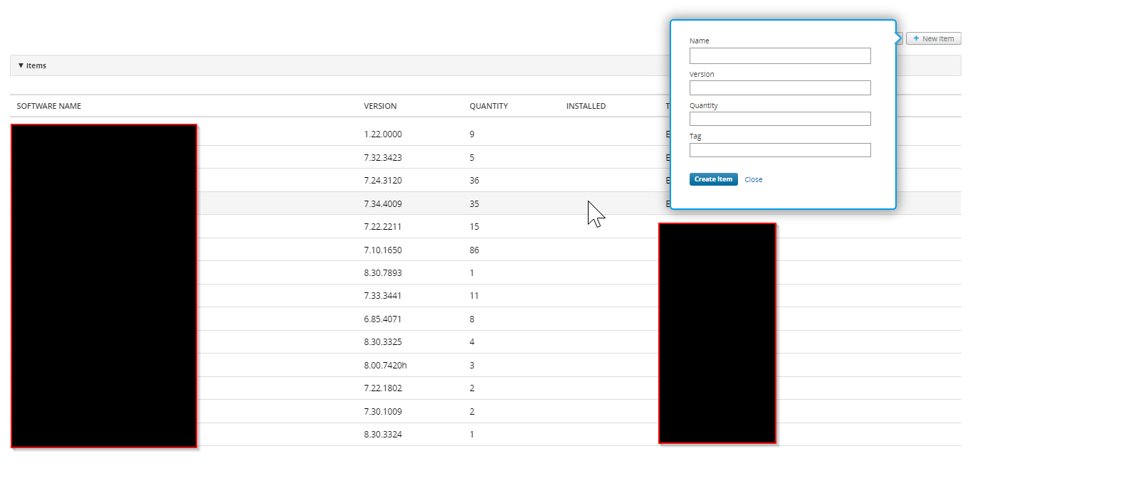 Items show accurate version information and name but do not actually link to the software. If we wanted more information about one of these items we would have to locate it within Software section.