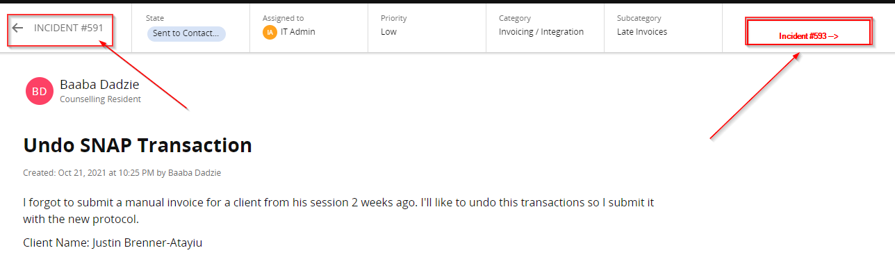 SWSD - Generate fwd/back nav button from within the ticket content screen to eliminate the need to exit out to the Incident screen