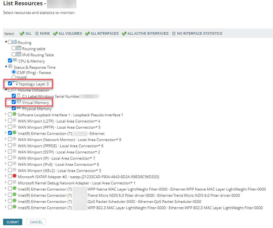 There is already a way to bulk remove network "Interfaces" from being monitored, but not for Resources such as Topology Layer 3, Virtual Memory, CD/DVD Drives, Memory, CPU, etc. Each of these Resources consumes processing power on the Polling server, so it is important to unmonitor Resources no longer needed.