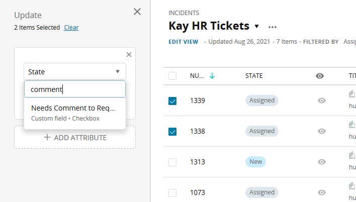 When you mass update tickets, adding comments to all of the tickets is not an option. When there's a major incident and we 50 of the same tickets it would be nice to update them with new comments, all at once. You can change the state to resolved but there's not an option to add a text resolution. It would be nice if both of these things were possible. I do know how to update tickets related to a parent ticket so maybe that's not required (although nice to do it all in one place) but the comment one is very important.