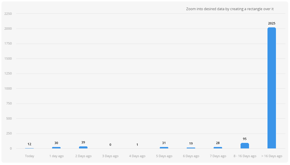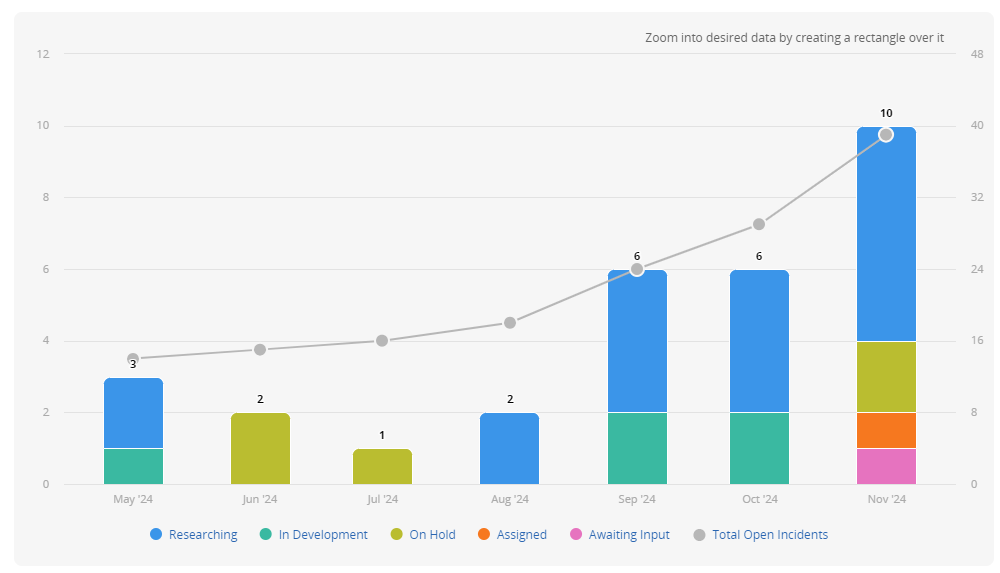 The Incidents Management report below shows a maximum option of eight-day intervals, and does not display any intervals about 16 days.