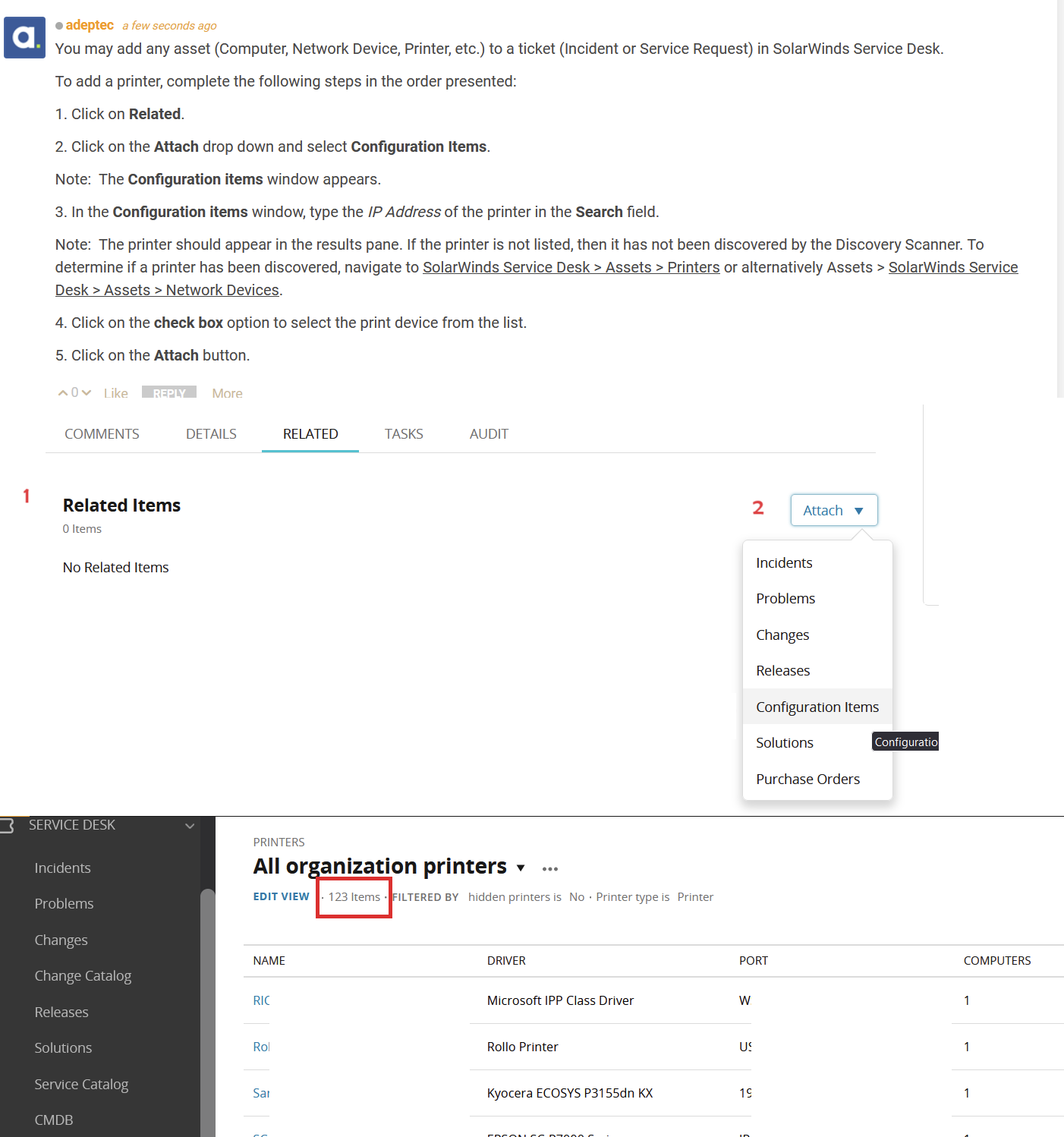 4. Click on the Attach drop down and select Configuration Items.