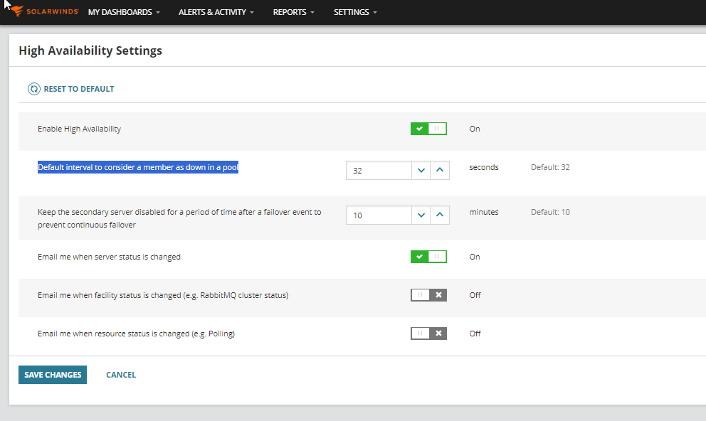in certain scenarios we do not want a HA pool to fail over too quickly.