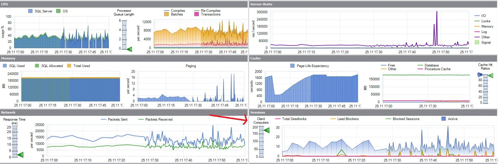 Main dashboard is not provide us information about session count (such as Active, Sleeping, Suspended, Blocked, Lead Blocker, Deadlock). We need to see when blockings happened fast. Blocking tab only show us jump latest blocking but we need to see previous blocking. We have to investigate blocking time periods, it takes much time. Main dashboard should include session count chart depending on their status.