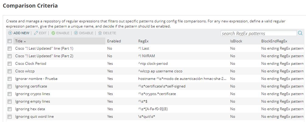 More information is needed about regular expressions that help us replace certain values contained in a baseline for NCM communications equipment.