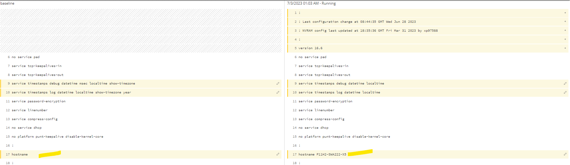 * Keep the Hostname command but RO-LAB-01 replace it with the regular expressions or omit the name but don't ignore the command line.