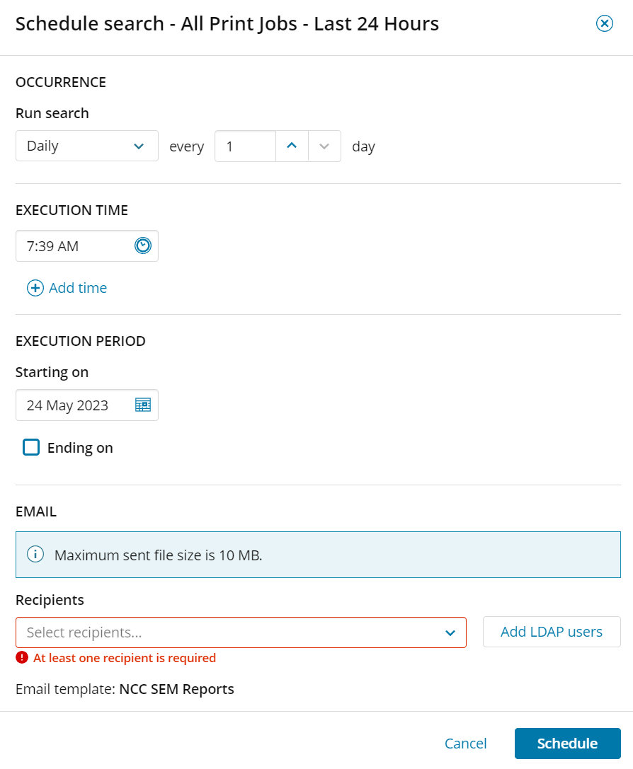 In previous versions of SEM, we were able to schedule searches and have reports sent to our emails that were in excel format. Now, with the current versions of SEM, the system will compress the data into a zip file and attempt to email that. Our exchange server policies are configured to block .zip files and we are not likely to get the exchange administrators to flex that rule. After opening a support case with tech support, they stated there is not a way to change the format of this file being emailed out, so we are stuck running these searches manually each day instead of being able to automate reporting to email other teams of activity.