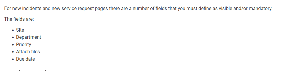 We have the ability in the service portal to make general fields such as site and department visible and mandatory. I need to have the ability to override this global setting when creating Service Requests. I have requests that are to be submitted by users who are not connected to any site or particular department in my organization.