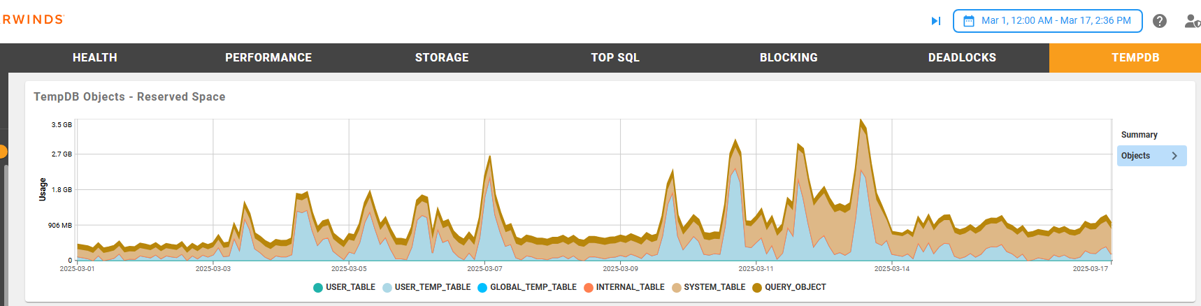 The SolarWinds SQL Sentry Web applicaiton, the server name is currently only displayed in the left-side menu on the web portal. This limitation makes it challenging to capture a partial screenshot from the top, such as when trying to include Tempdb usage information along with the server name.