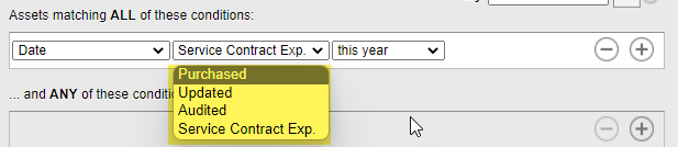 This idea is to add another option to this search condition called "Warranty Exp. Date" and associated search options, so that you can search for assets that: