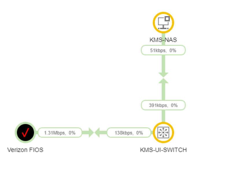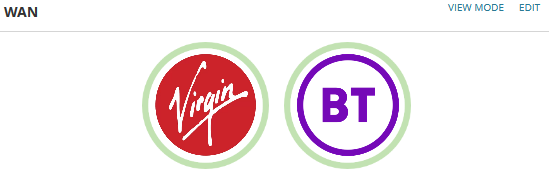 Here we have static icons for Virgin and BT's WAN interfaces. On a NOC screen, I imagine the green may be hard to see without changing the background colour of the entire map or adding a shape and filling it in. Of course, we can change the border colour manually, but this won't change with the status.