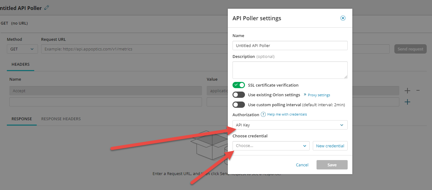 SendHttpRequest should have an API Cred/KEY option where the Creds/KEYs are stored in the Database like all other methods to pass creds within SolarWinds.