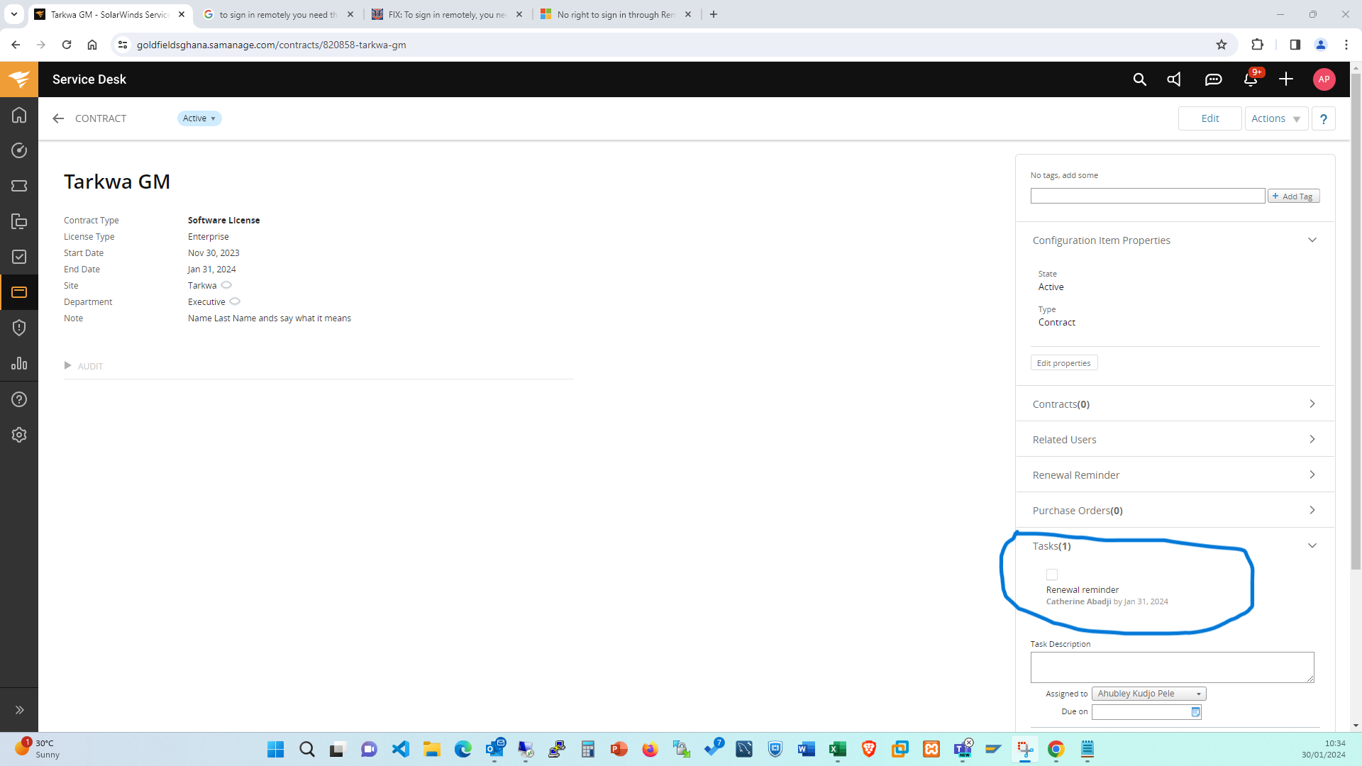 Contract task must send notifications on due date and after due date on daily basis until the task is checked completed.