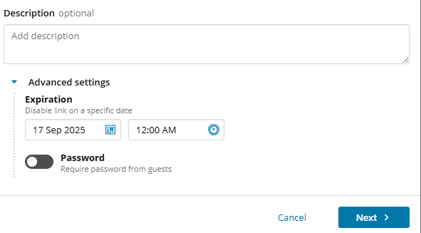 I am wondering if it would be possible to have a setting that would make the "Advanced" expanded by default as it has happened that users for got to set the proper date or password on the links.