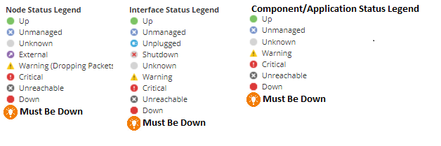 I know that would be a great idea add a new element status Icon (In all Orion modules) named 'Must Be Down' because ther are environments where the objects must be disconnected/shut down and need be alerted when the status change, in that cases the 'Unmanaged' Status doesn't work.