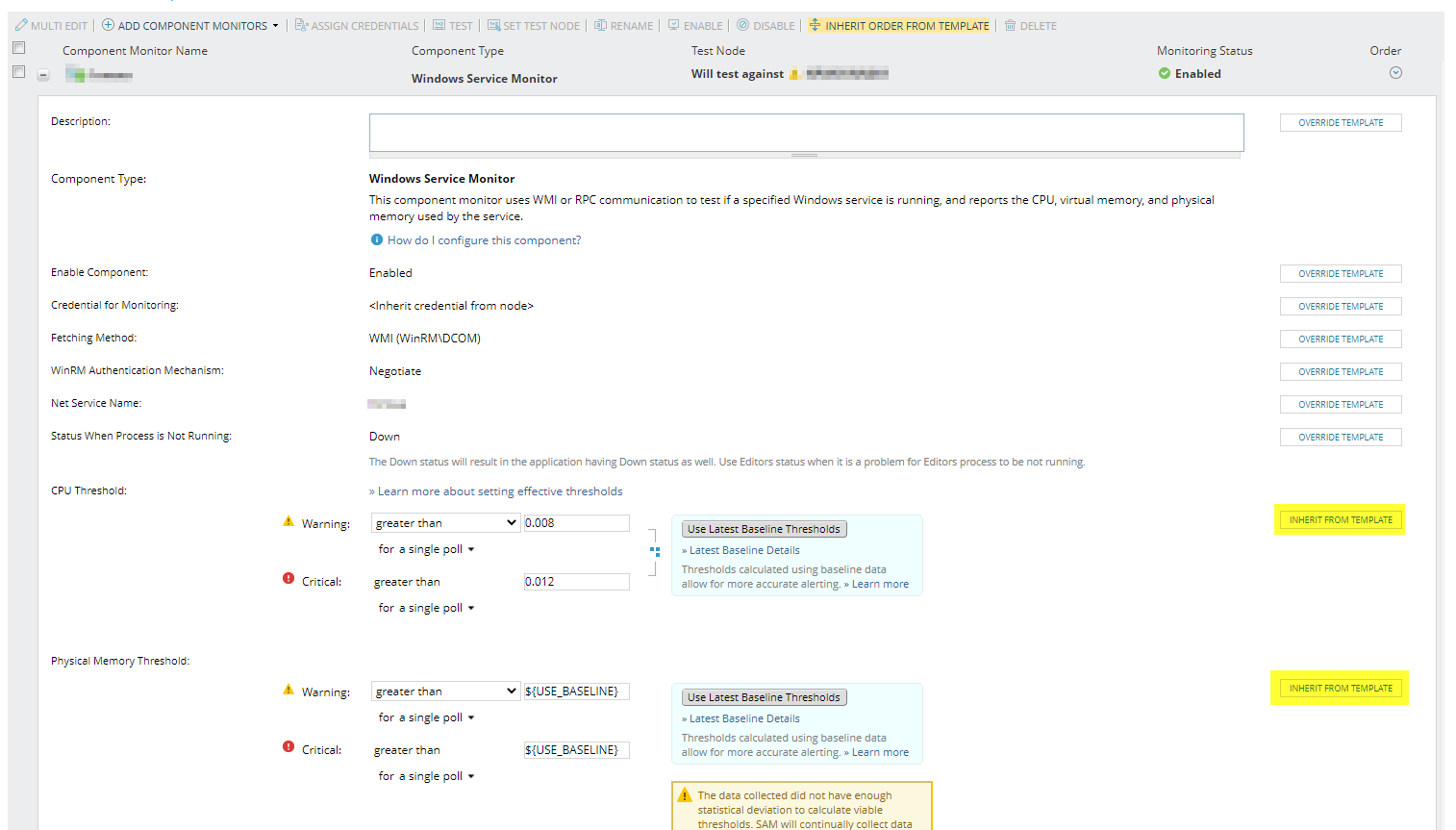 When I go to edit the application monitors themselves to inherit from the template though, there is no way to edit the components to inherit from template.