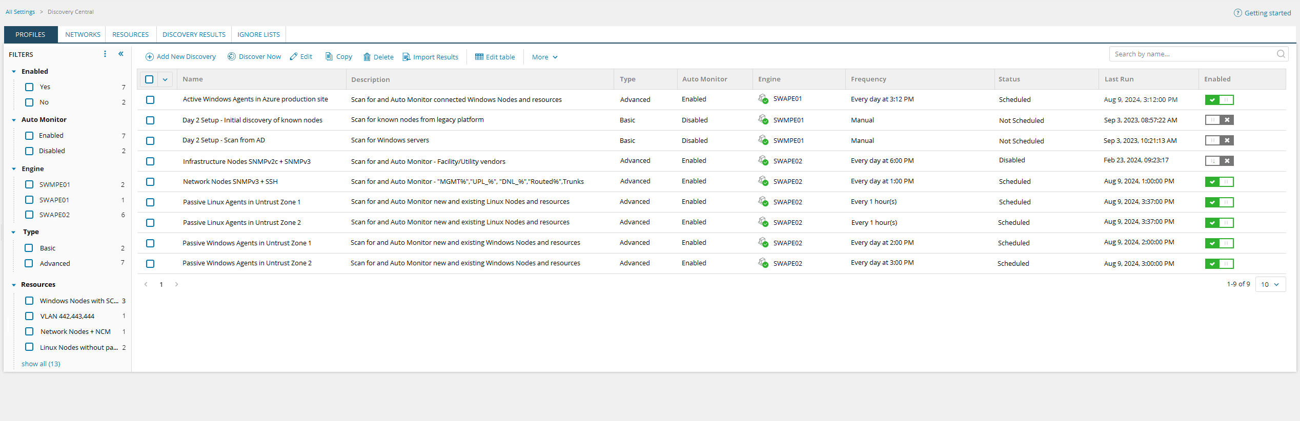 - Enable/Disable functionality for individual/multiple Discovery Profiles