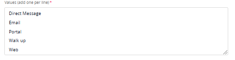 We would like to include - Walk up and Direct messages in this list of selectable values. As seen below