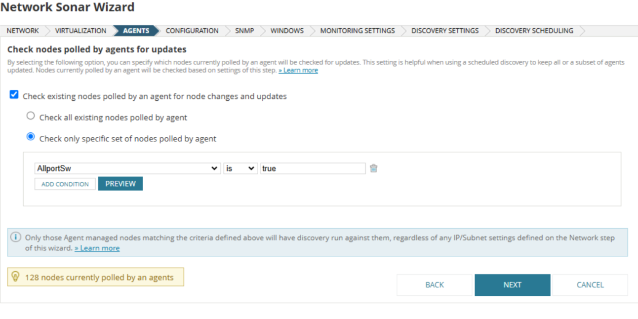 Is there no way to scan only SNMP-monitored devices where the X custom property is populated?