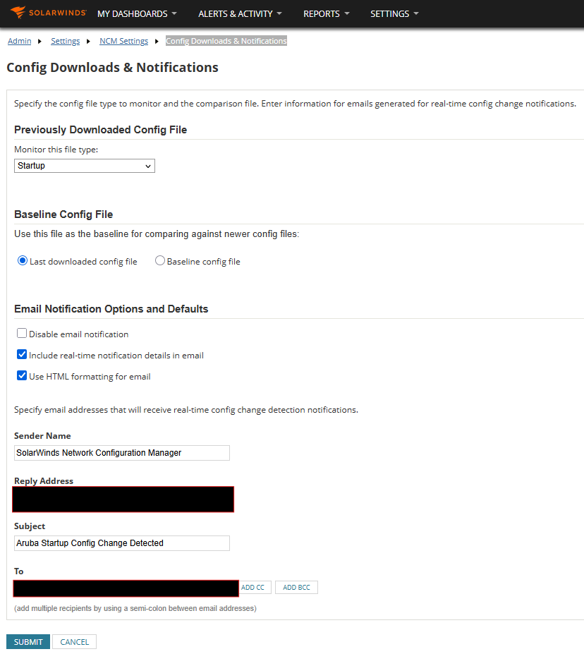 Admin>Settings>NCM Settings> Config Downloads & Notifications