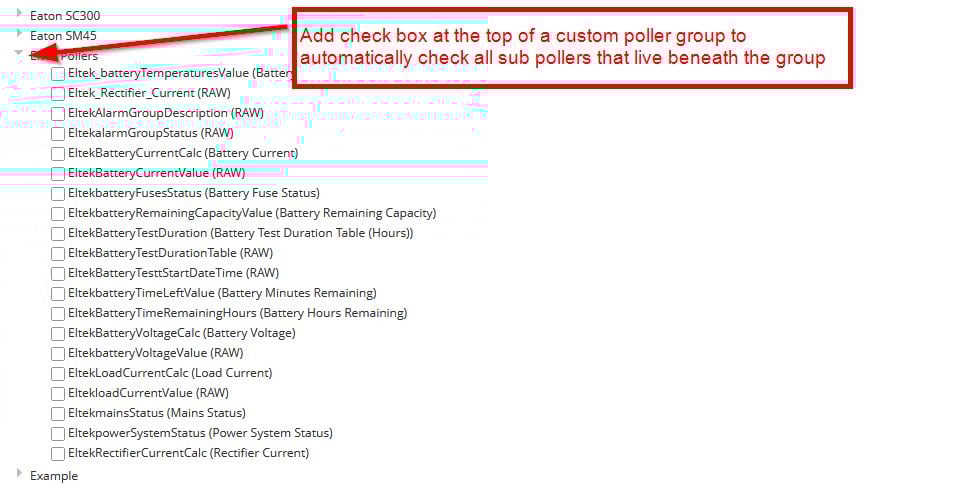 We utilise custom pollers extensively in our environment. Currently, you need to manually select every custom poller that you want. This can be slow depending on how many you need to add, and has lead to some pollers not being added due to human error.