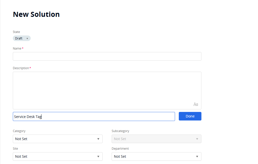 Would be nice to be able to control what Tag naming are used in SWSD. It's difficult to make a standardization policy since there is no way to lock down what tag names are used and anyone can name a tag whatever they want. Policies can be implemented but without any teeth, it still ends up a free for all. Plus when typing in a tag name (new solution for example) there is no auto fill to coax individuals into using a particular name already created. Other than editing a view to see what the tag names have been used, there is no easy way to see a list or pull a report that I can find. For Admins, it would be nice to be able to lock down to a list of tag names that have been agreed upon and publish them.